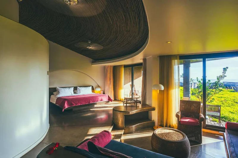 75 rooms with private terraces, featuring natural décor that immerses guests in the cultural environment of Rapa Nui: