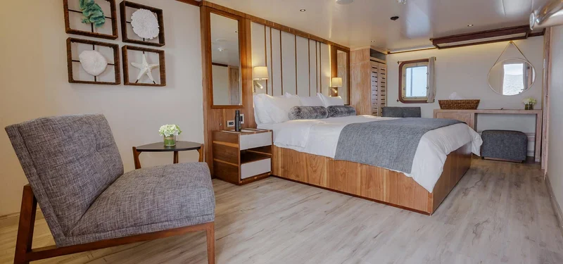 The last dry dock took place at the end of 2019, our CEO Andre Robles was at the shipyard in Guayaquil performing boat inspections and had the pleasure to have a private tour of the boat. He was shown all the details in company of the owner: Mrs. Dolores Diez herself. Her spirit and strenght at a Senior age is envied and admired by the Galapagos cruise industry, watching the silver lady carrying matresses and working side to side with her crew and construction workers shows on it's own the amazing amount of thought and detail that has been put into the maintenance and upkeep of this yacht. The same care is given to each guest respecting their precious vacation time.
