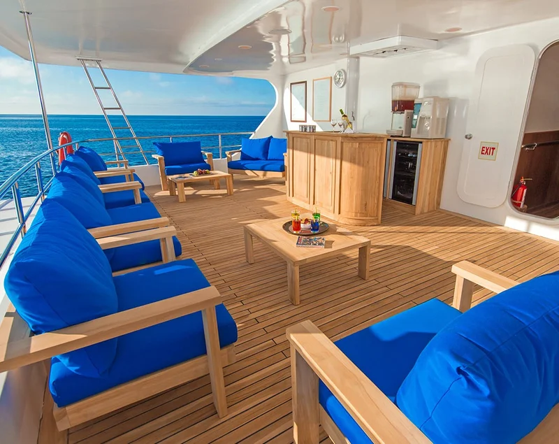 It is an ideal vessel for all those sojourners who yearn to explore the Galapagos in an intimate and comfortable setting, while getting exemplary, personalized services. Pushing the horizons of luxury, each of the cabins is fully equipped with a bathroom, a wardrobe, and a personal safe. The capacity of the yacht is sixteen passengers, who can savor a great stay in eight double cabins. Constructed in Guayaquil, Ecuador, the yacht offers meals and comfortable accommodation for your incredible natural history trip to the islands.