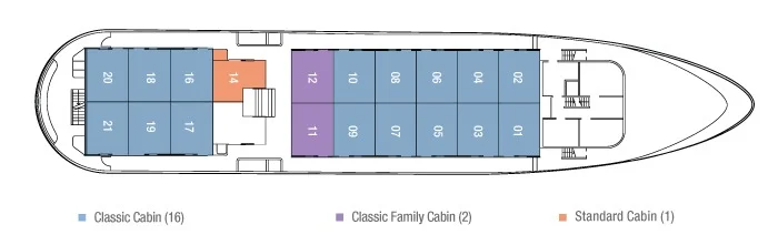 All 20 cabins on board are spacious and have their own private bathrooms – as you might expect. They really do offer everything you could imagine from a high-end cruising vessel. However, it is the social areas that really stand out. The three public decks offer all the space you would find on a much larger vessel. With amenities that include a bar-salon, dining room, observation area, Jacuzzi and solarium, as a nature traveler all your onboard needs are catered for.